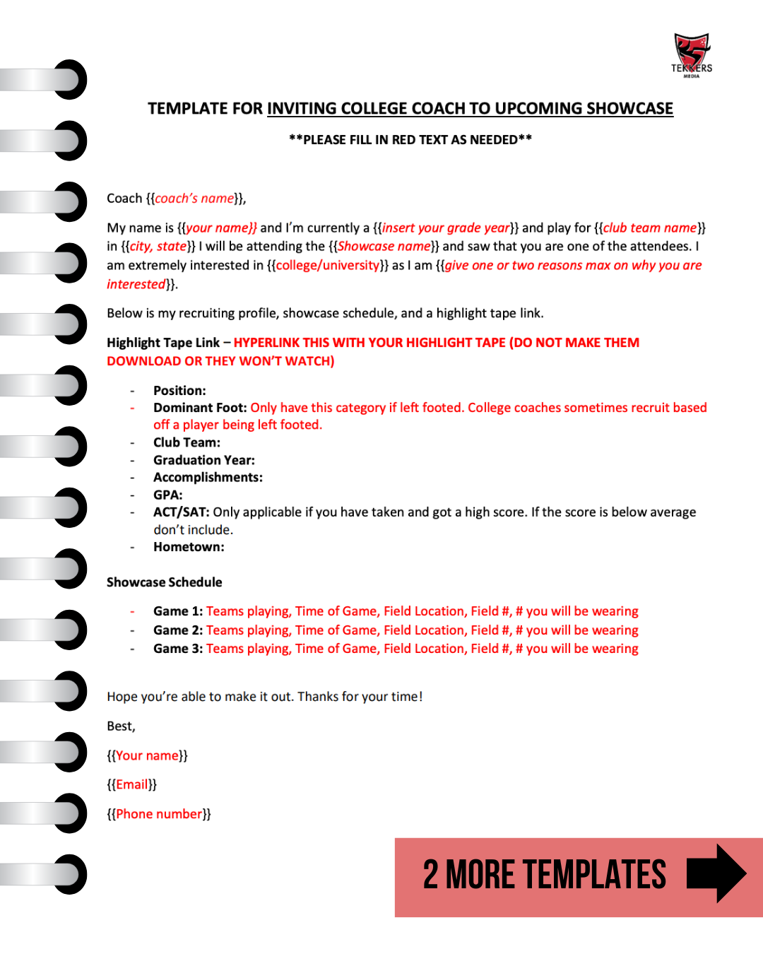 FREE TEMPLATES FOR EMAILING COLLEGE COACHES
